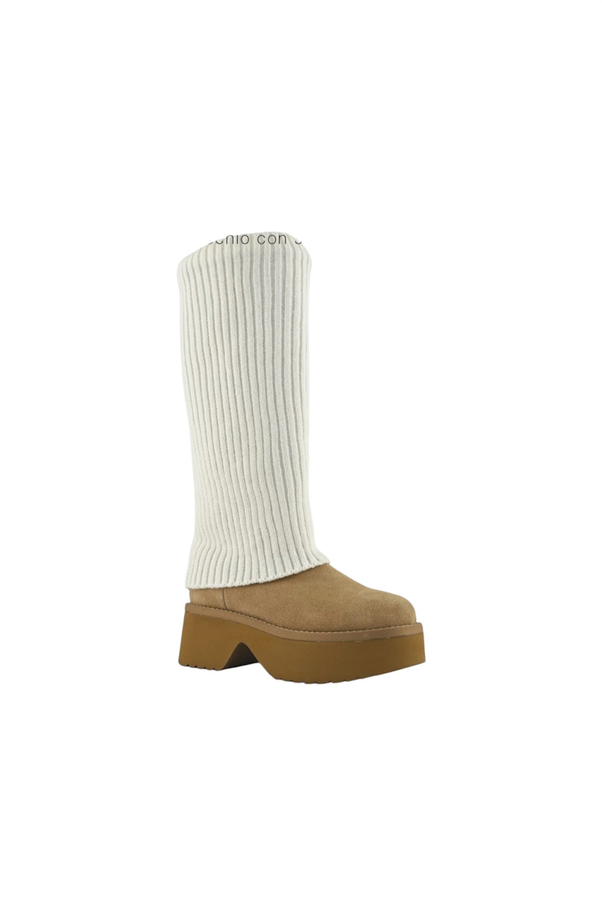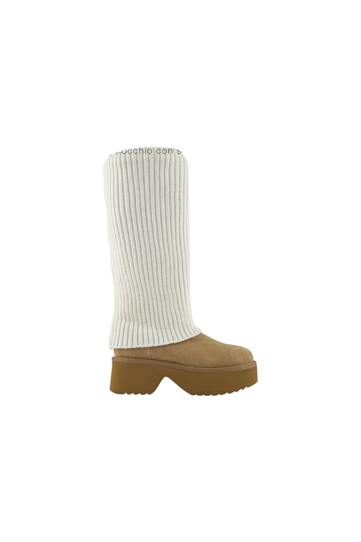 Le amanti dello stivale alto impazziranno per questa versione in pelle scamosciata con calzino a costine incomporato che copre interamente il gambale. Alleato perfetto di chi anche in inverno non rinuncia a mini dress o shorts, anche senza collant. La suola plateau slancia e il contrasto tra tomaia e calzino crea un simpatico match di colori e stili.