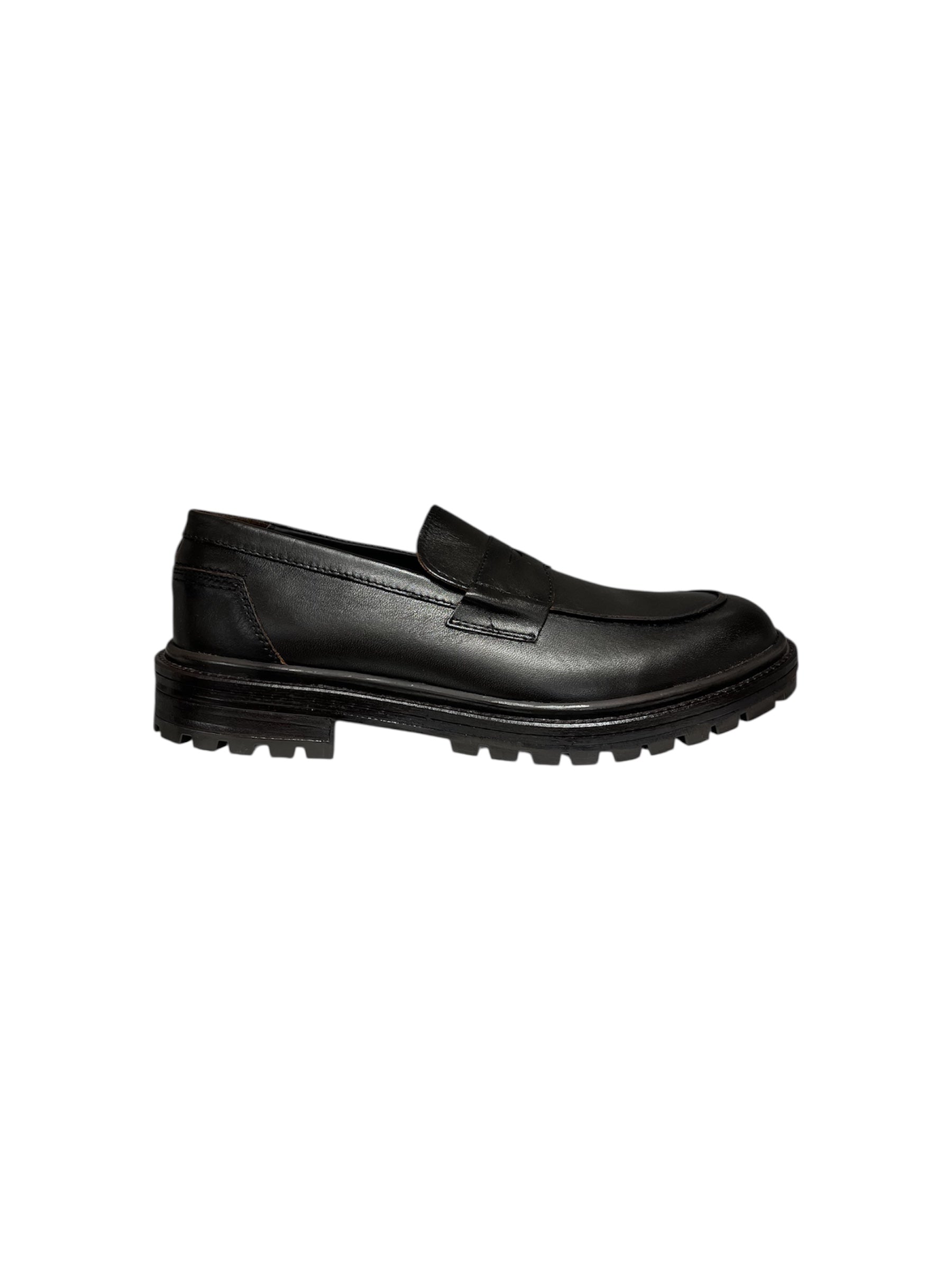 Un design semplice caratterizza questi mocassini, realizzati in pelle con sottopiede nero con logo .
